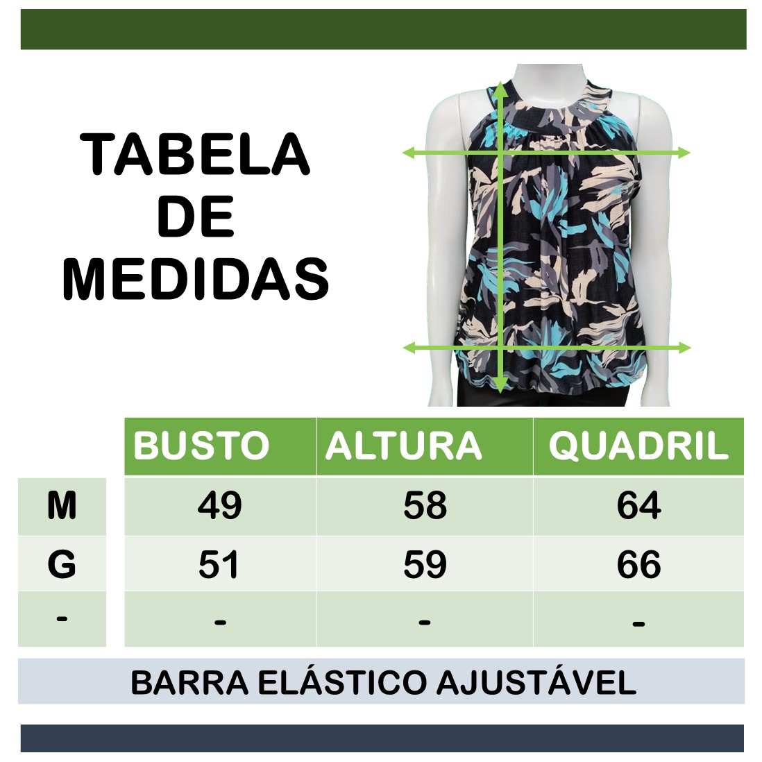 Tamanho: GG | Largura Busto: 53cm | Comprimento: 60cm | Quadril