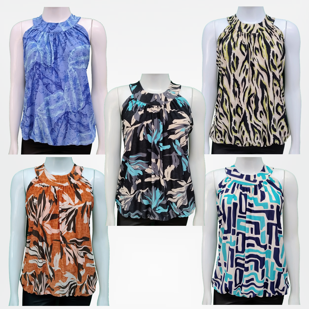 Kit com 12 peças, inclui 12 regatas com estampas variadas e cores sortidas. Cada kit contém 12 estampas únicas, sem repetições.