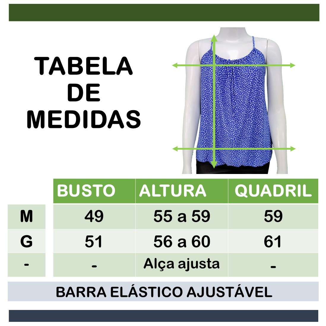 Tamanho: G | Largura Busto: 54cm | Comprimento: 56a60cm | Quadril 61